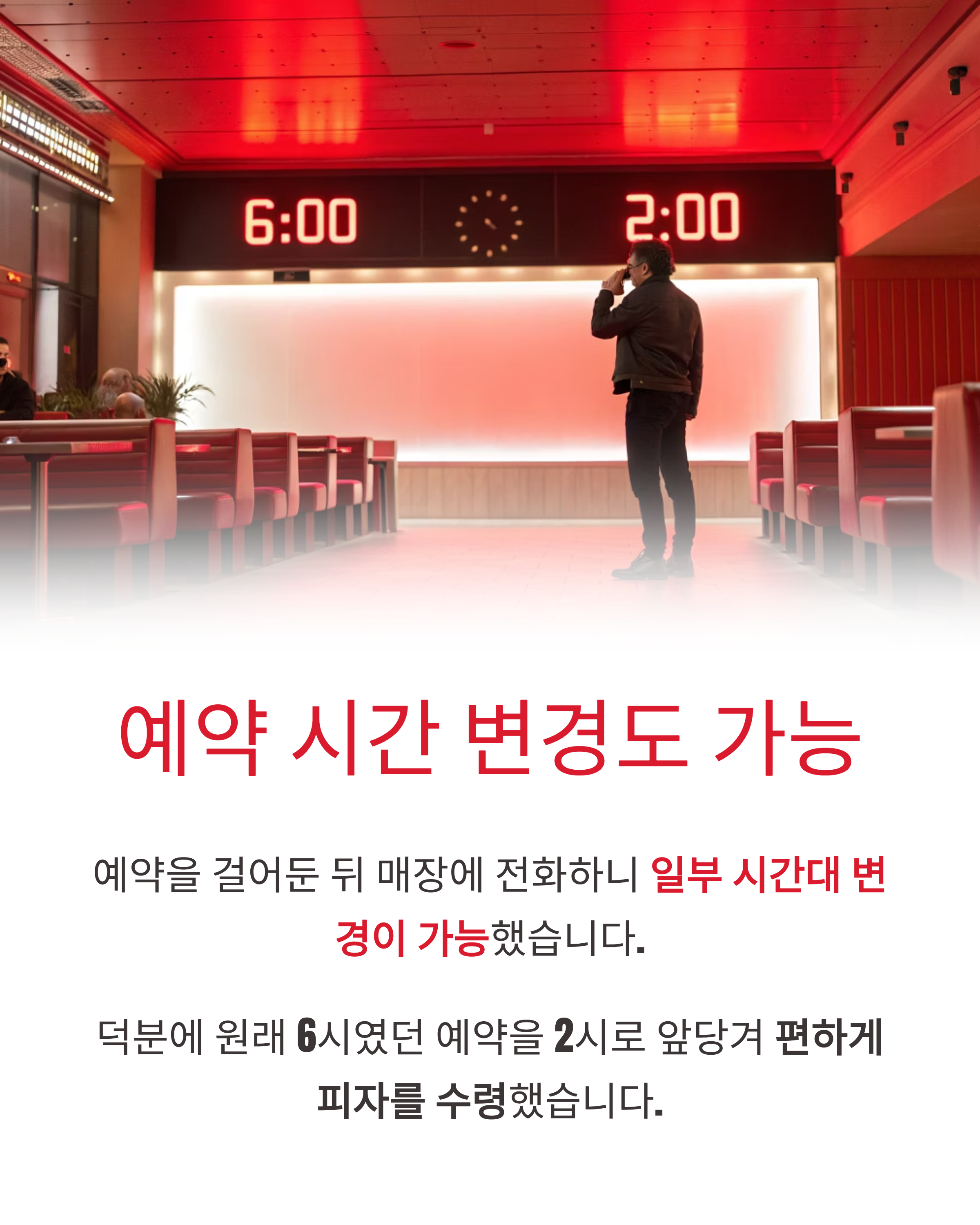 예약을 걸어둔 뒤 매장에 전화하니 일부 시간대 변경이 가능했습니다.