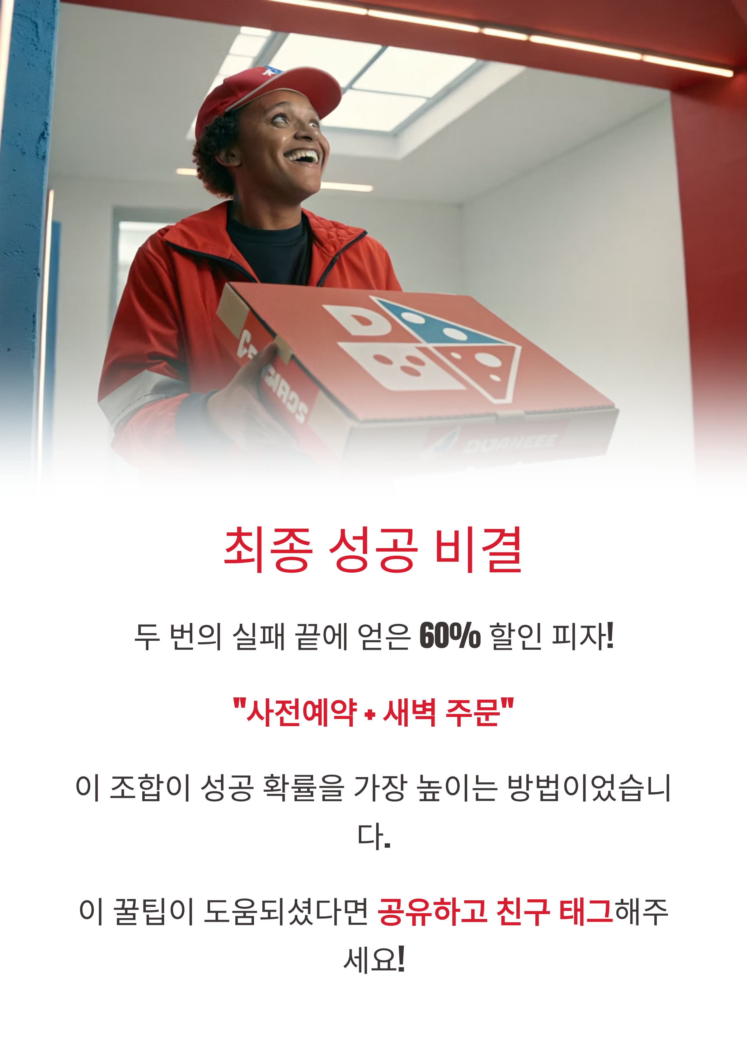 결론적으로 SKT 도미노피자 60% 이벤트는 “사전예약 + 새벽 주문”이