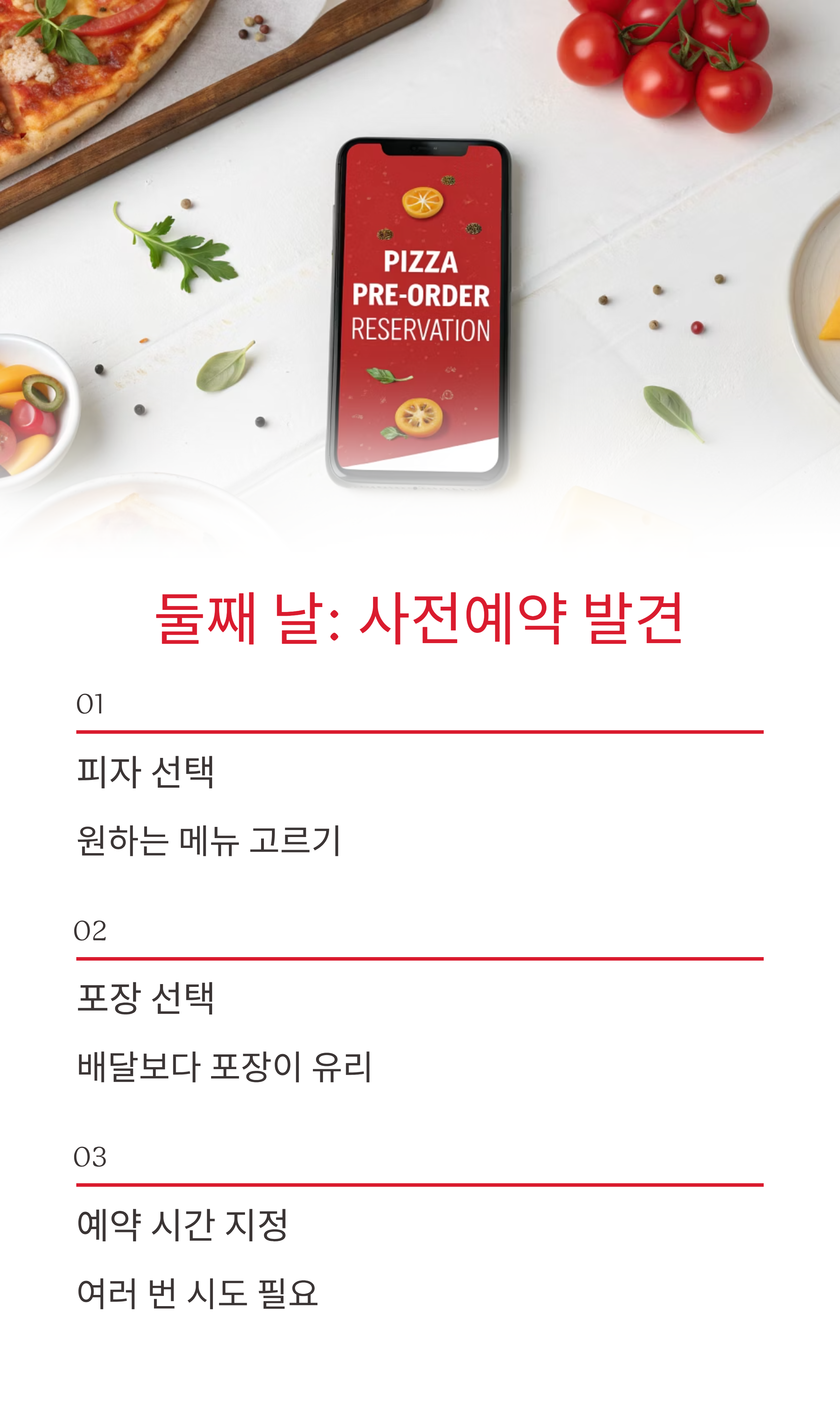 피자 선택 → 포장 선택 후 예약 시간을 지정하는 방식이었는데,