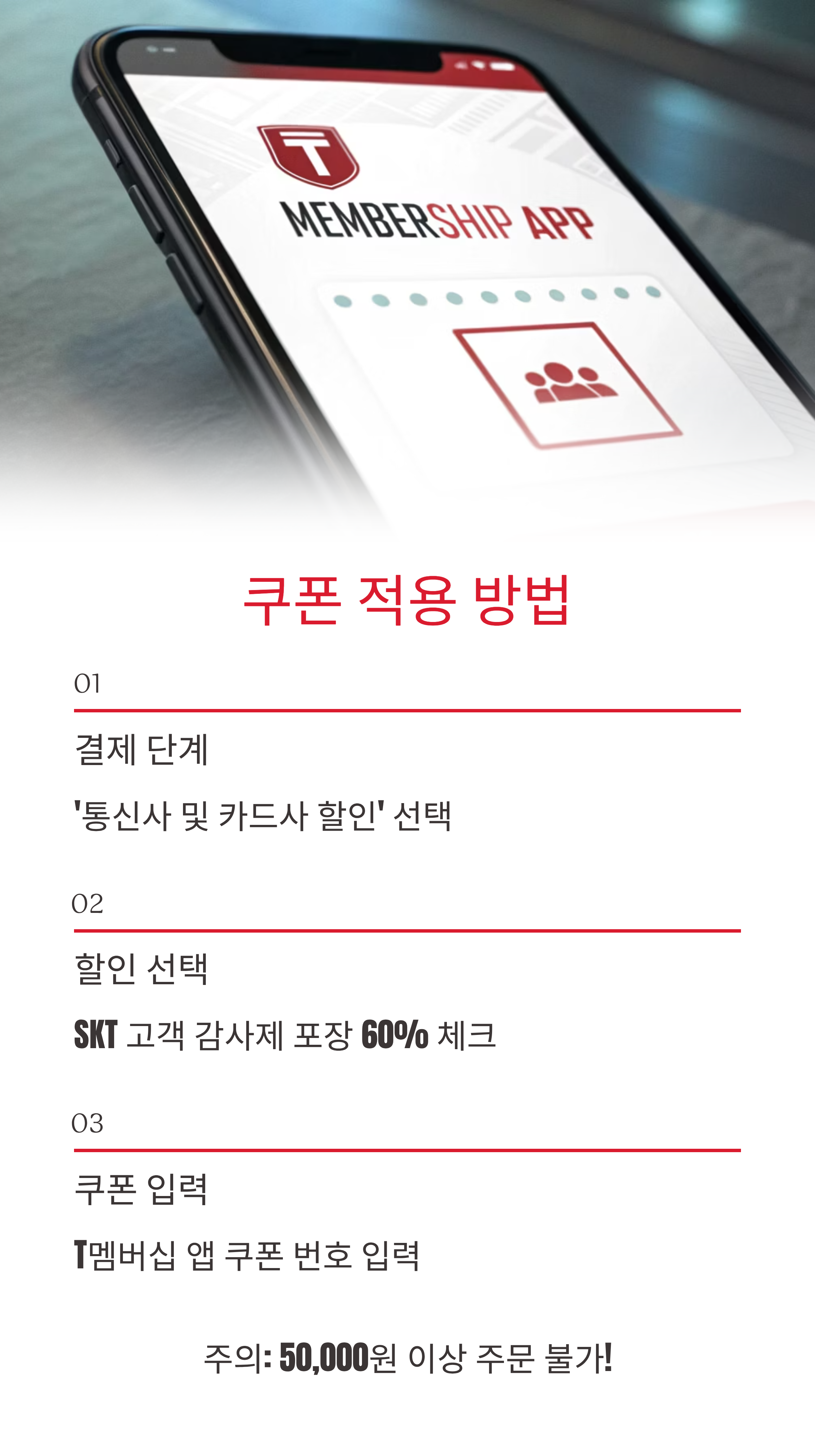 T멤버십 앱에서 발급받은 쿠폰 번호를 입력하면 적용됩니다.