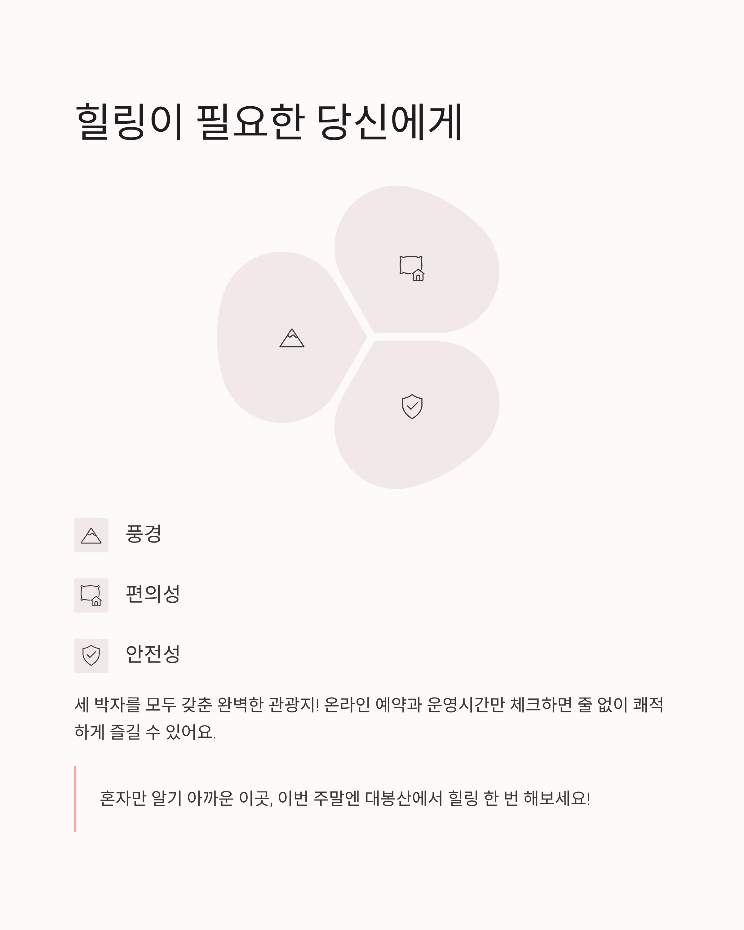 풍경, 편의성, 안전성 세 박자를 모두 갖춘 관광지입니다.