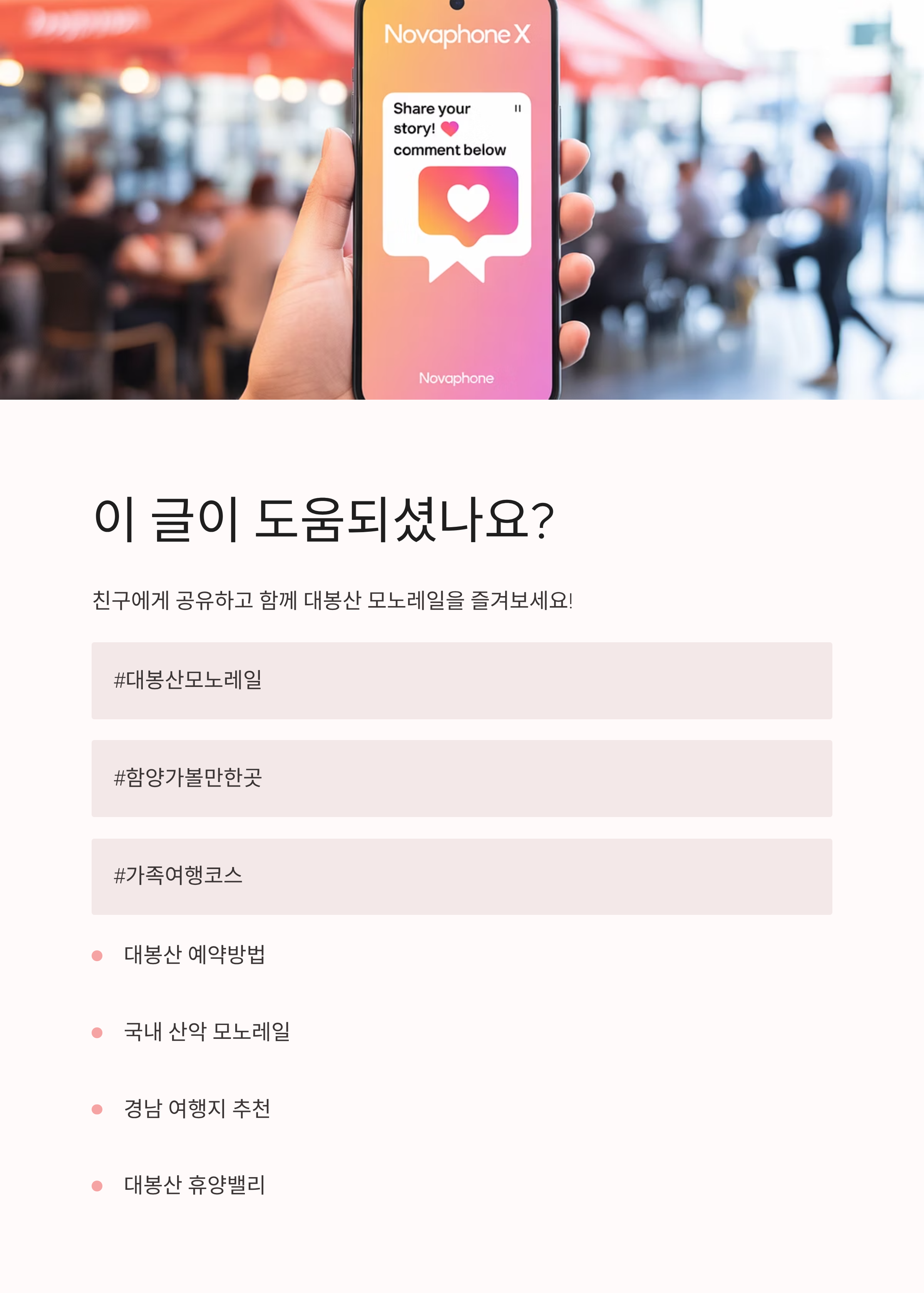 이번 글에서는 대봉산 모노레일의 예약 방법, 요금, 운영시간, 주의사항까지