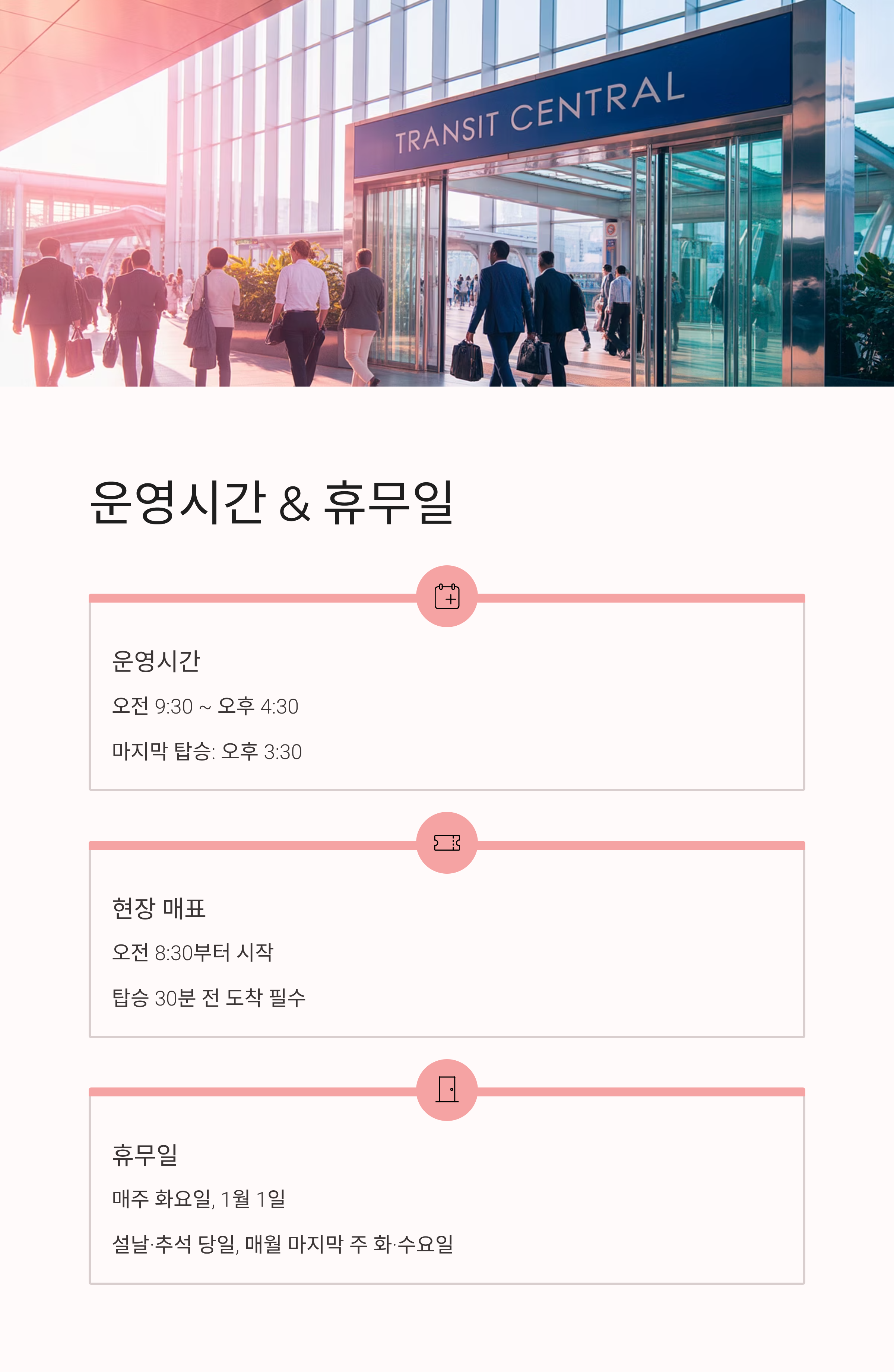 연휴·주말엔 거의 매진이니 온라인 예약이 훨씬 유리합니다.