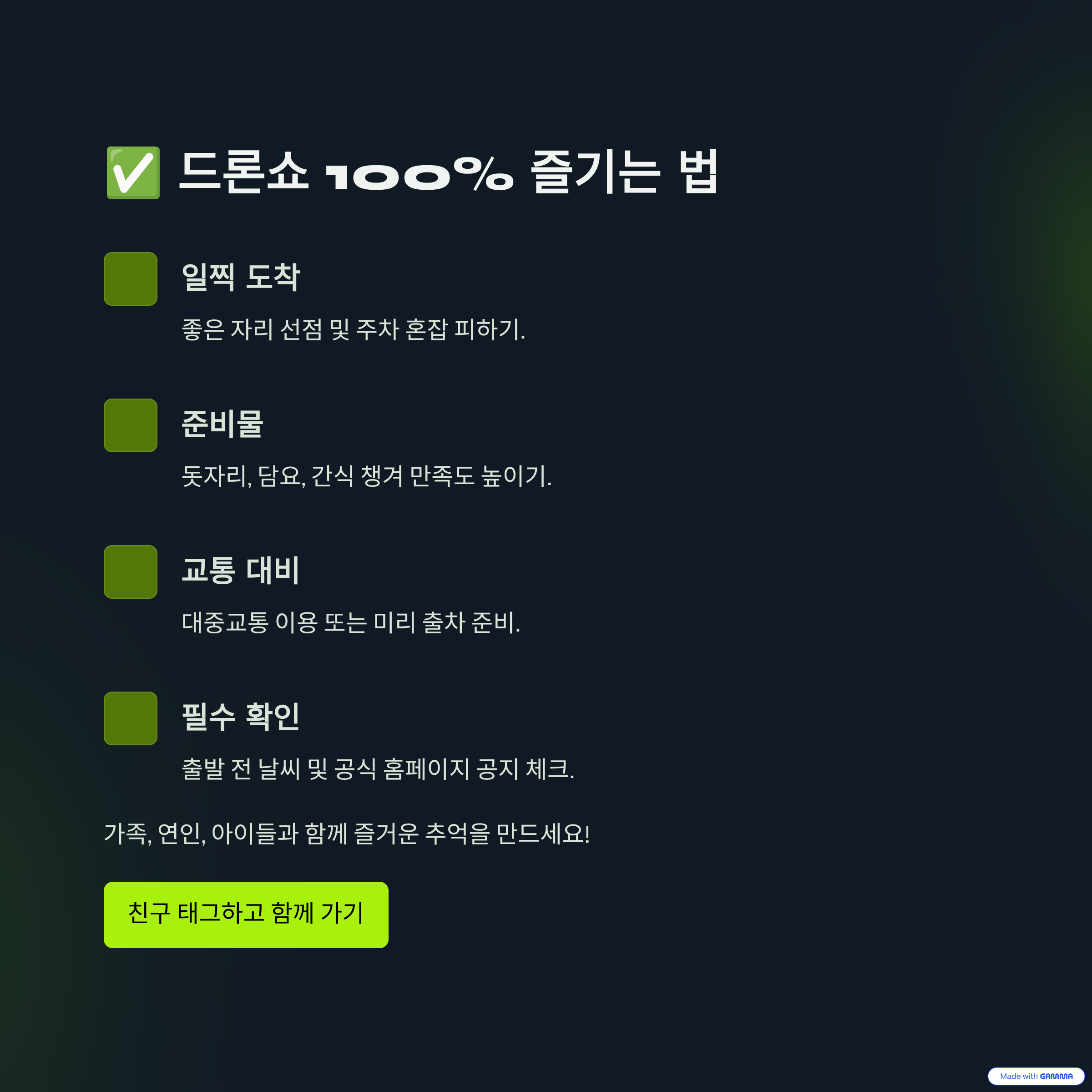 ✅ 결론: 드론쇼 100% 즐기려면?