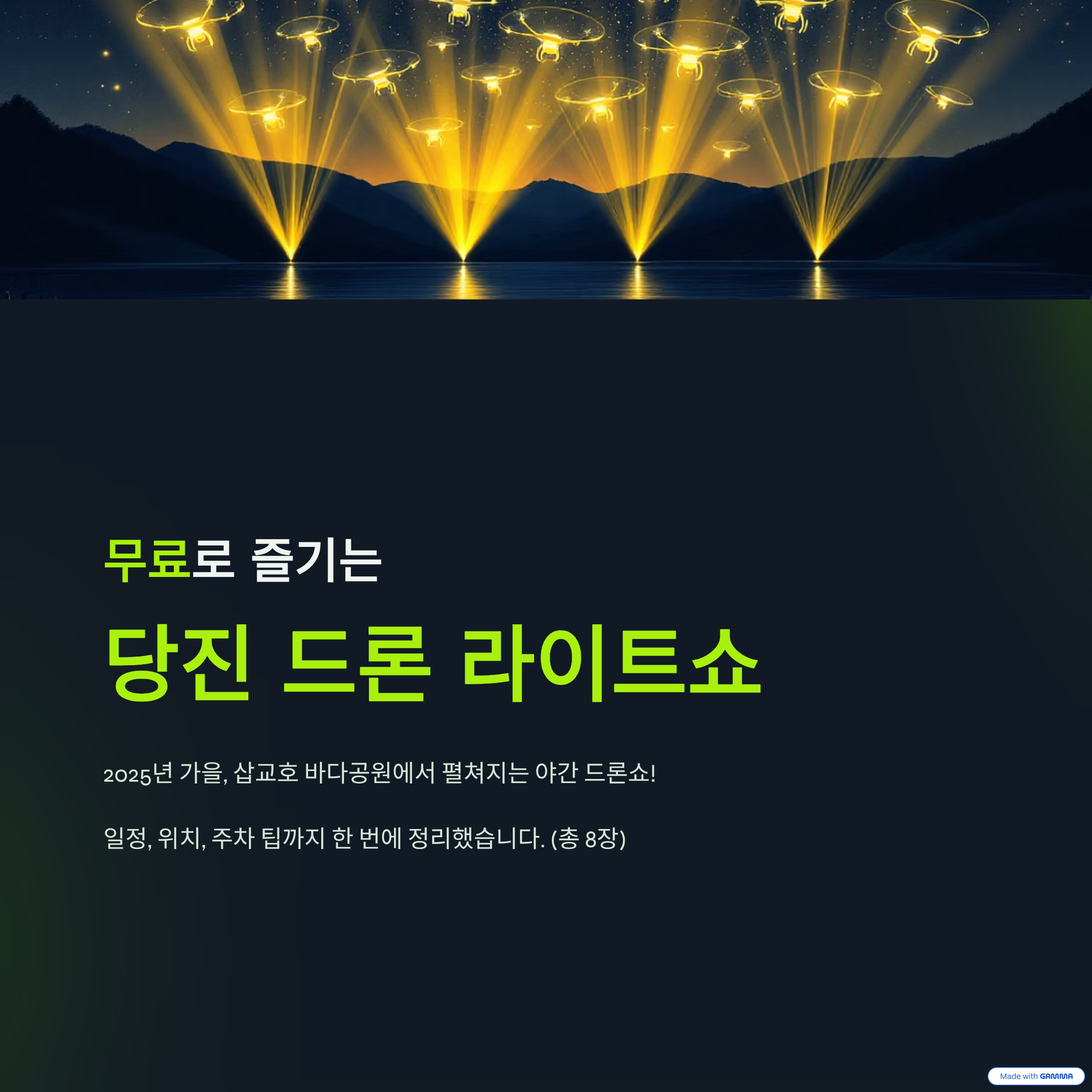 이 글에서는 드론쇼 일정, 공연장 위치, 주차 팁, 교통편, 현장 준비물, FAQ까지
