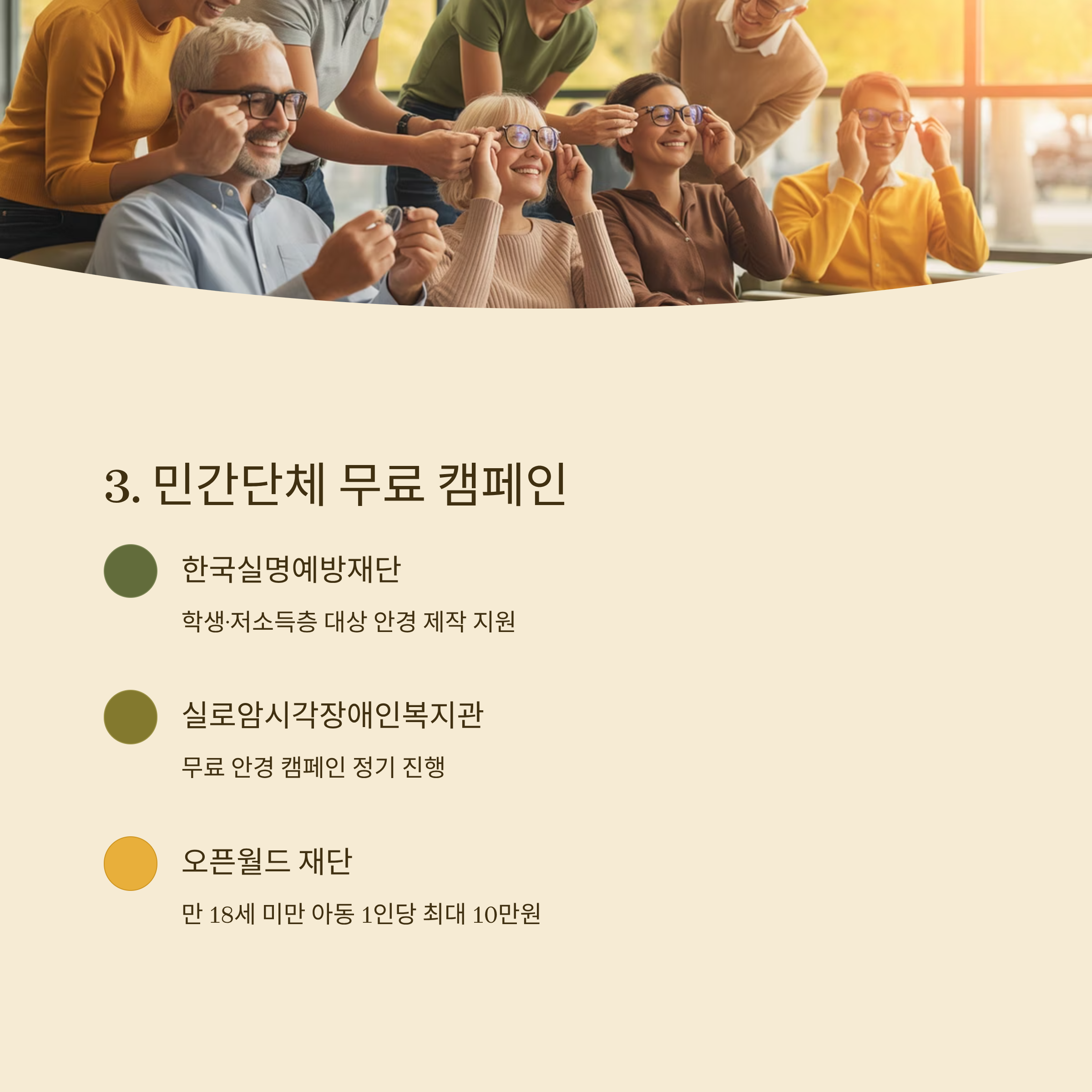 정부 외에도 여러 비영리단체가 무료 안경 캠페인을 진행합니다.