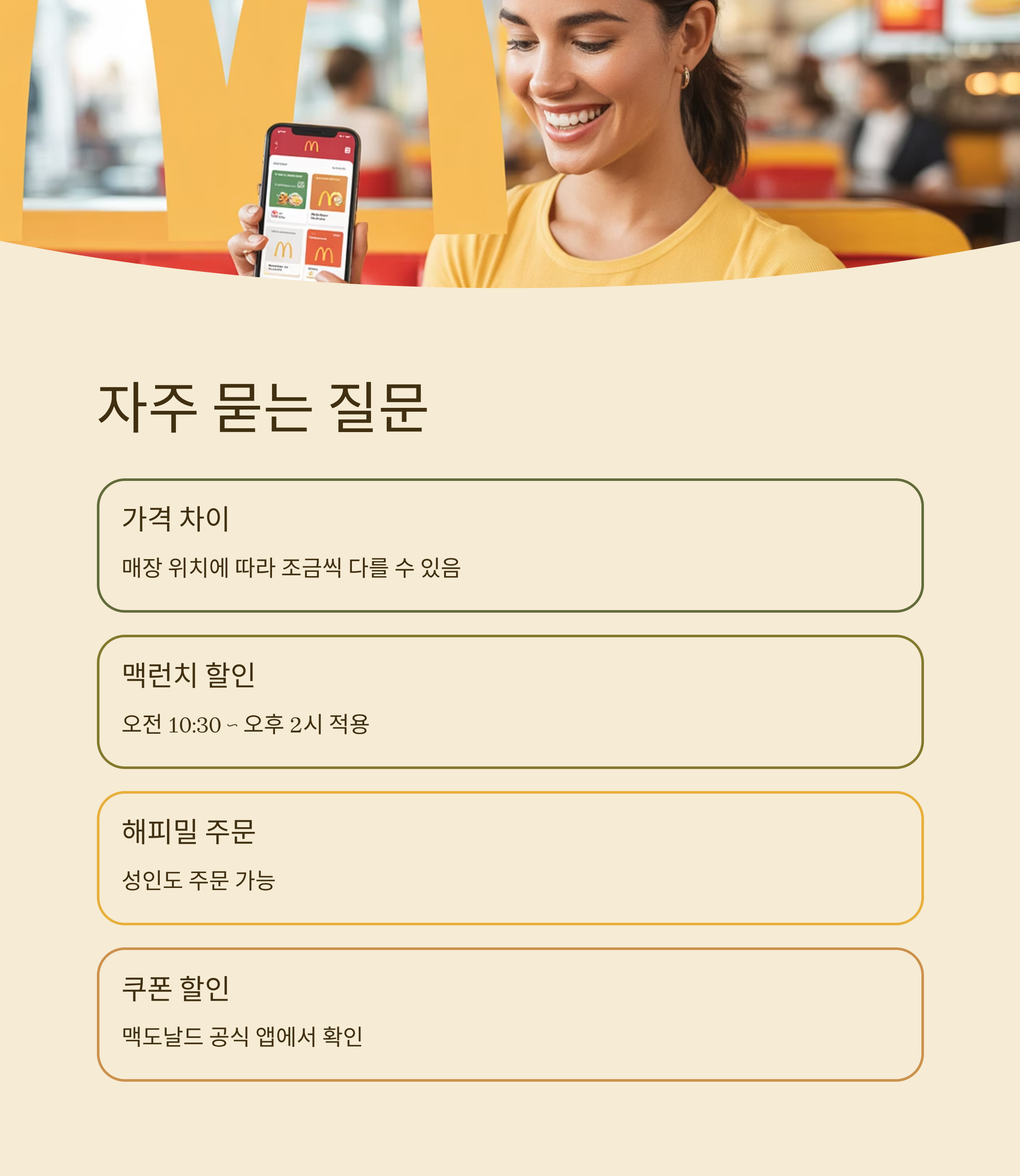 해피밀은 성인도 주문 가능하며 쿠폰 할인은 맥도날드 공식 앱에서 확인할 수 있습니다