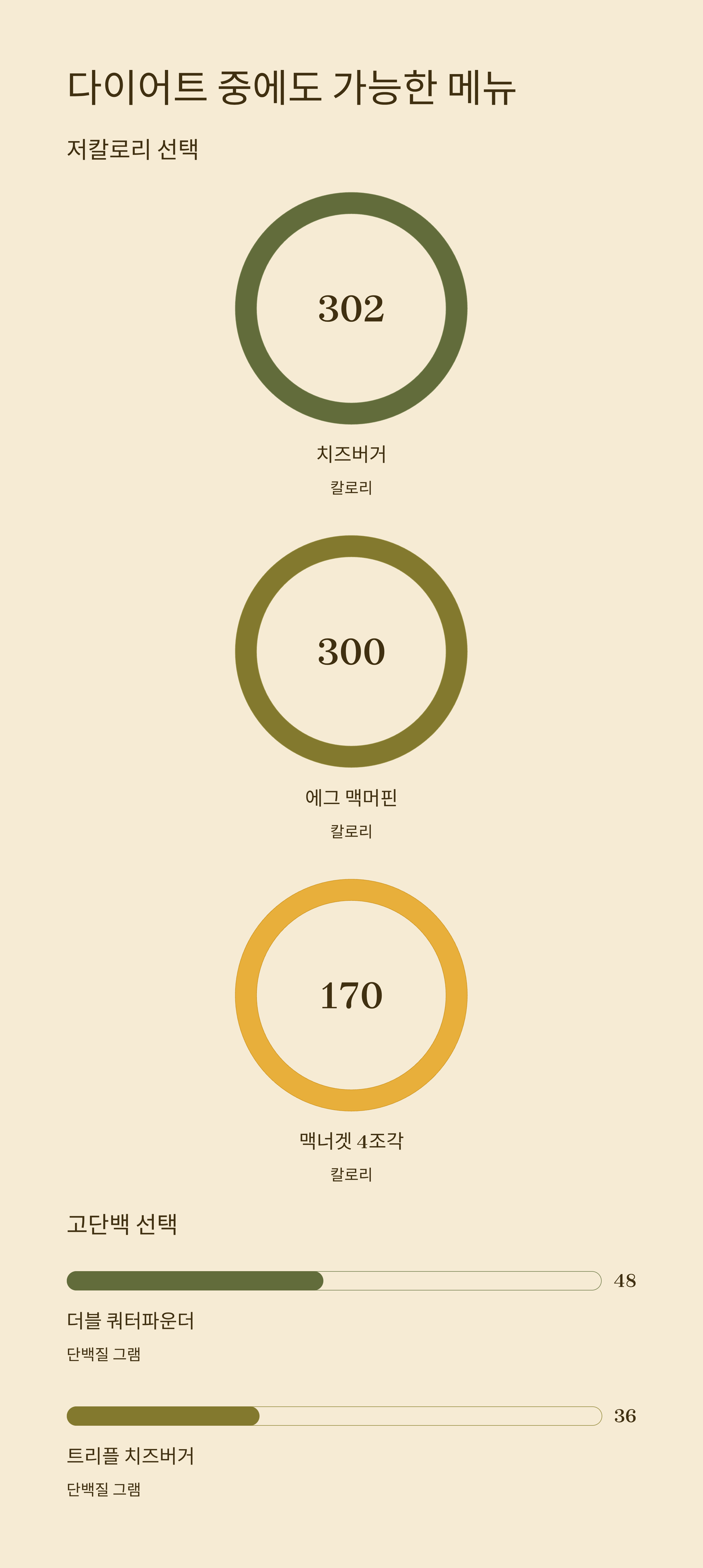 저칼로리나 고단백 메뉴를 찾는다면 다음 조합이 유용합니다