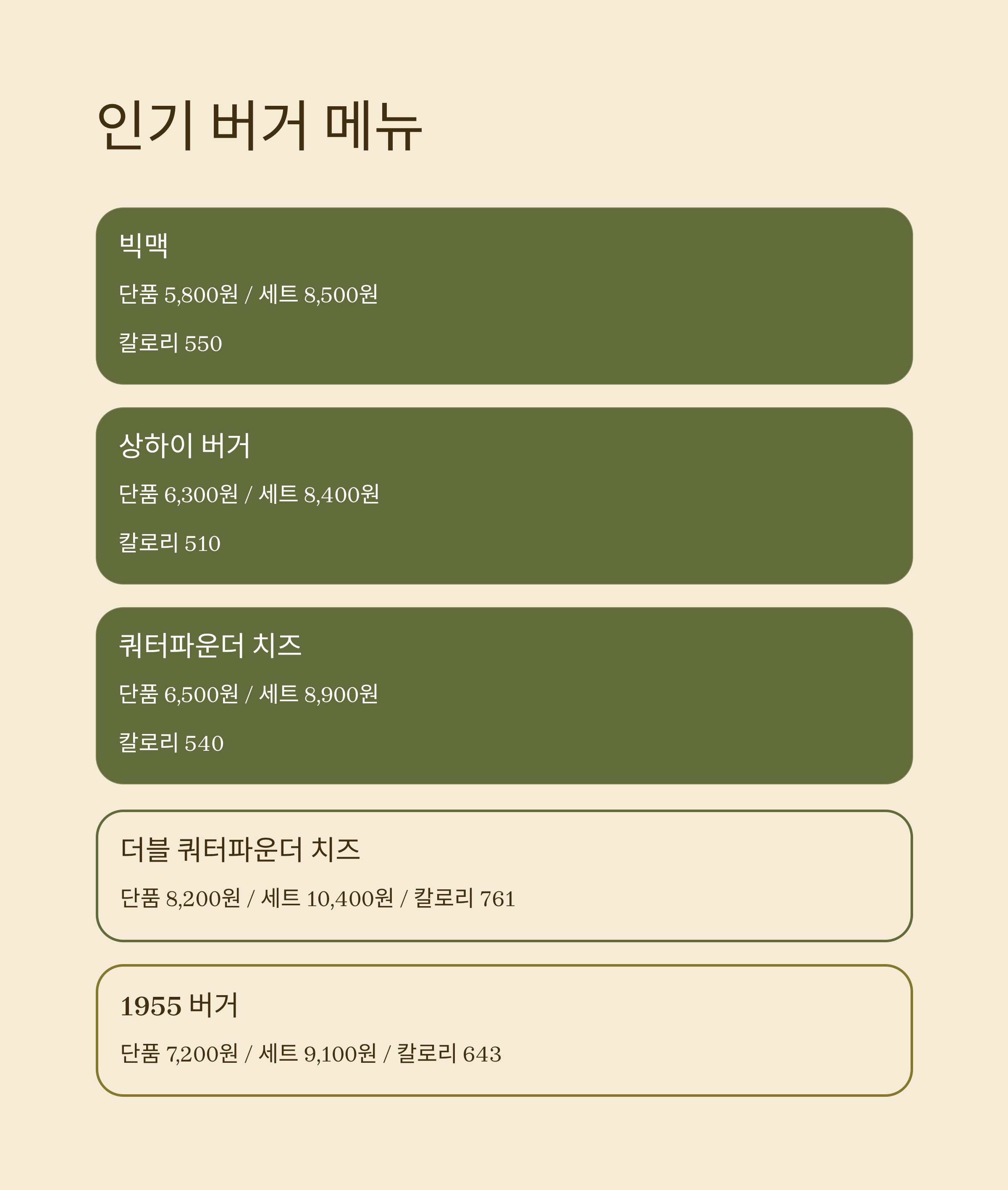 **인기 버거 메뉴**