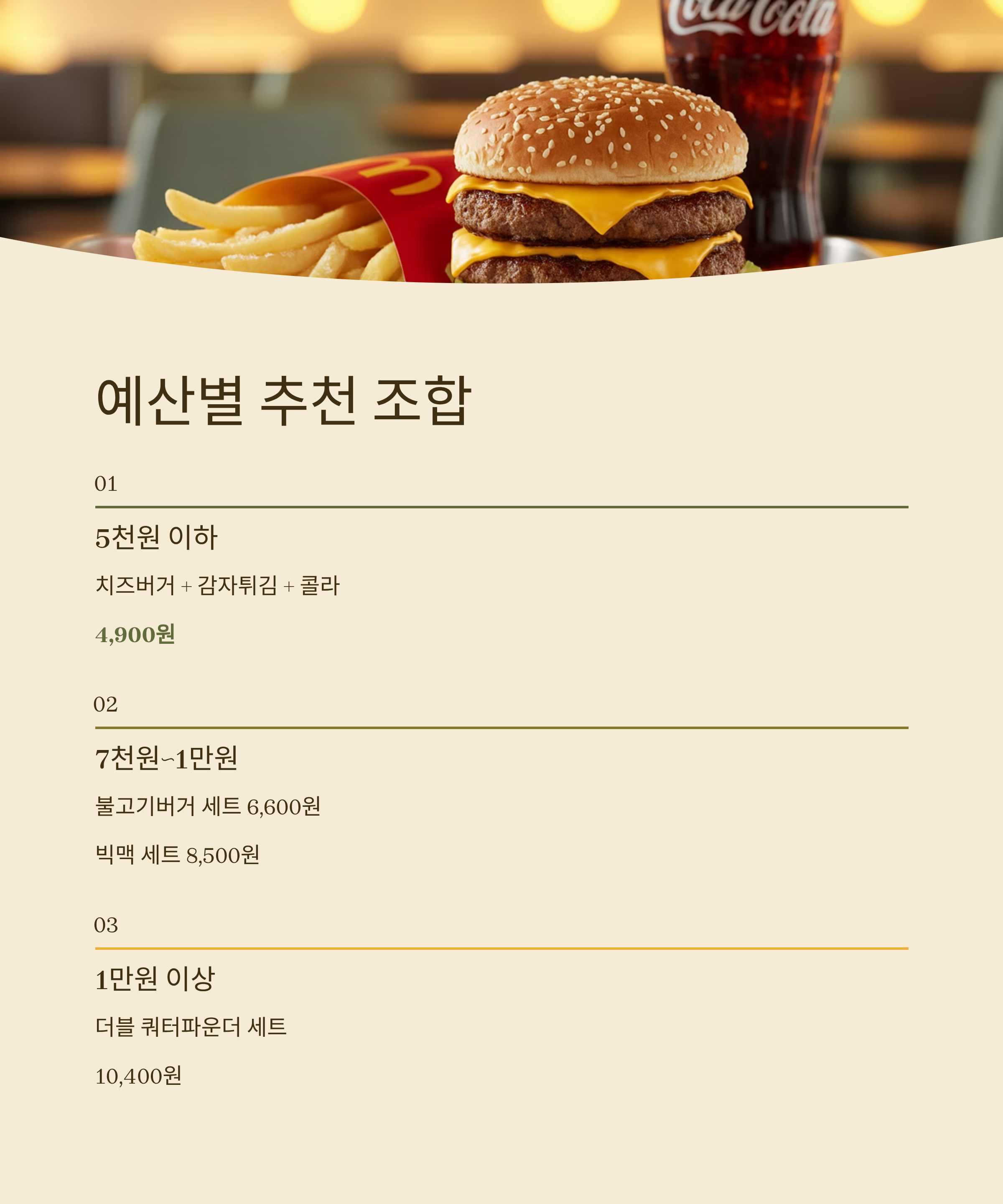 맥도날드는 다양한 메뉴와 예산별 선택의 폭이 넓어 누구나 만족할 수 있는 패스트푸드 브랜드입니다 오늘 소개한 정보를 바탕으로 자신에게 맞는 조합을 찾아보세요 합리적인 소비와 건강까지 챙기는 현명한 선택이 될 수 있습니다