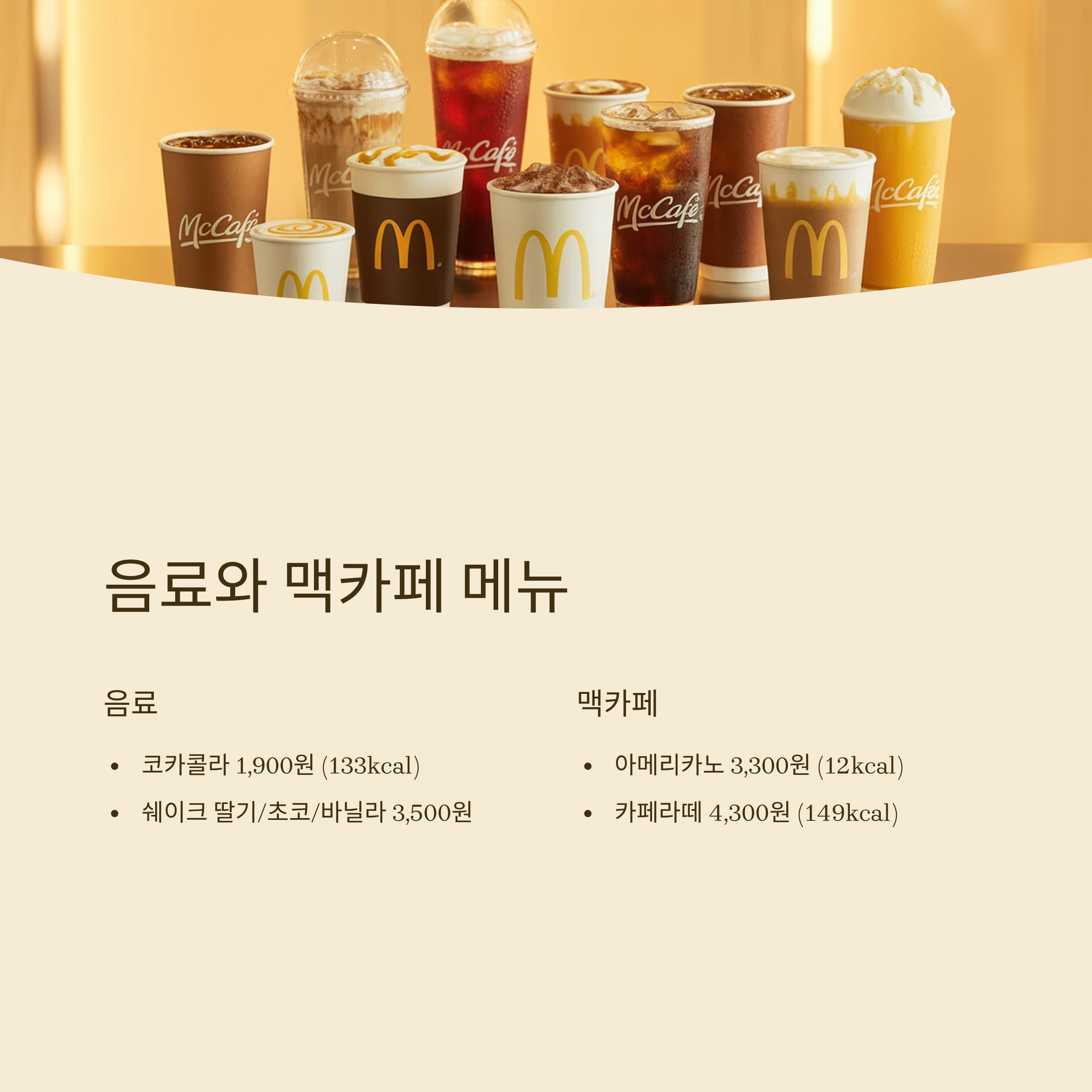 **음료와 맥카페 메뉴**